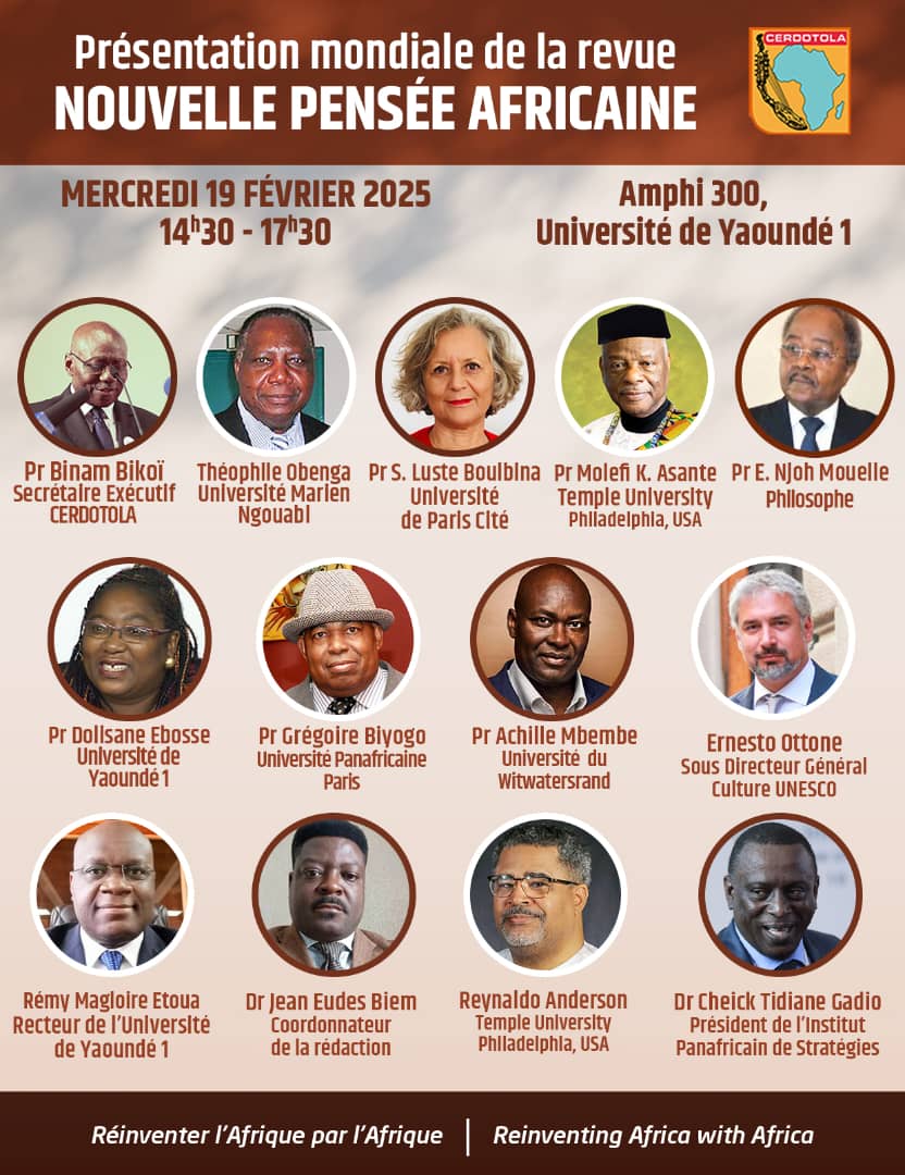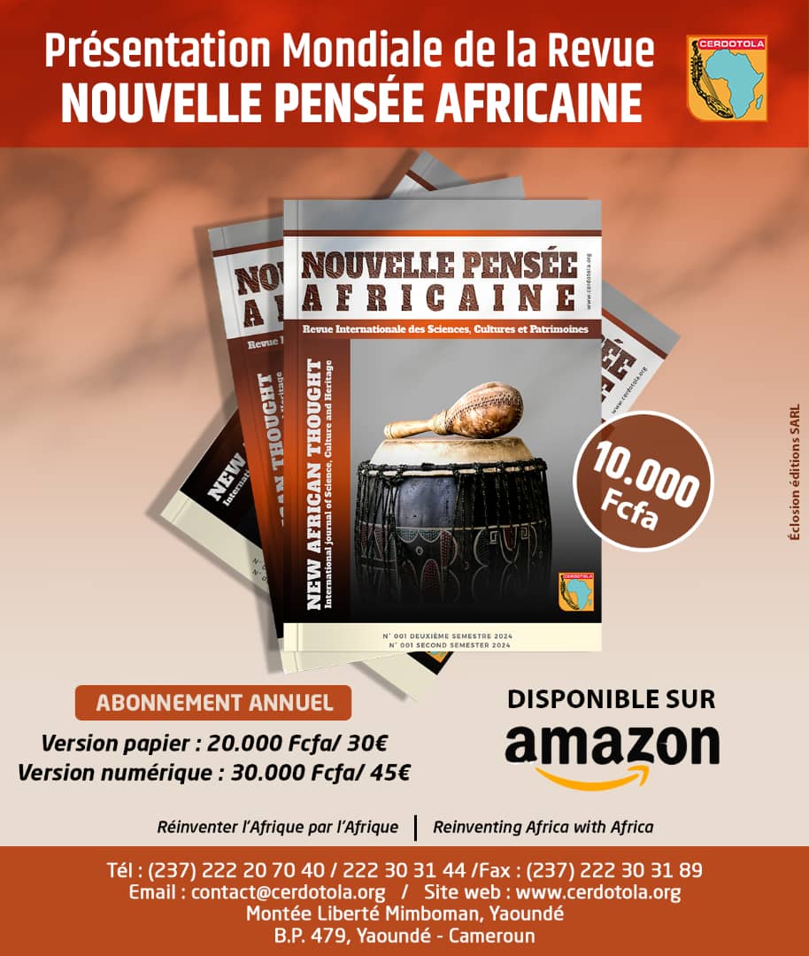 Dans le cadre de son mandat en faveur de l'étude et de la valorisation des patrimoines reçus en héritage pour la Renaissance africaine et pour la dignité retrouvée des Peuples et des Diasporas du Continent, le CERDOTOLA, Institution intergouvernementale ayant siège à Yaoundé, vient de porter sur les fonts baptismaux un périodique international de haut niveau intitulé NOUVELLE PENSEE AFRICAINE.